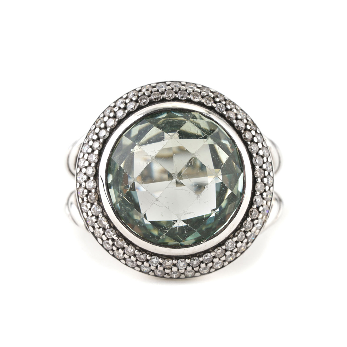 David Yurman Cerise Prasiolite Diamond Halo Ring Silver